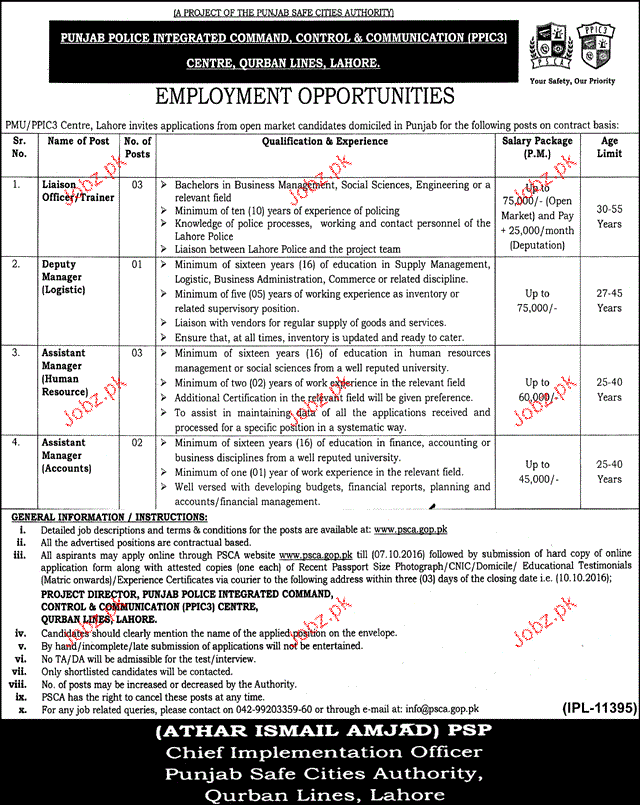 Apply as per details in job advertisement. Login to view further details of how to apply via https://www.jobz.pk online.