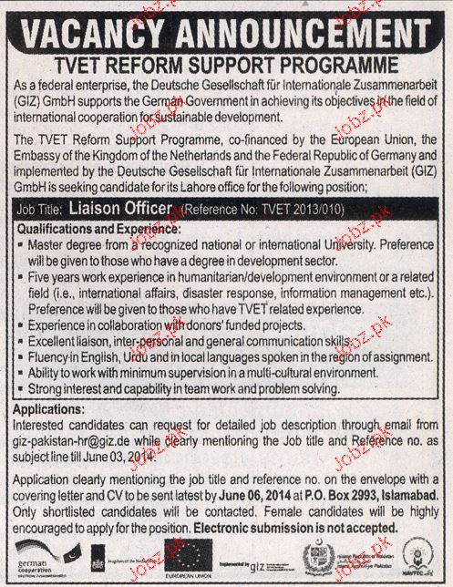 Apply as per details in job advertisement. Login to view further details of how to apply via https://www.jobz.pk online.