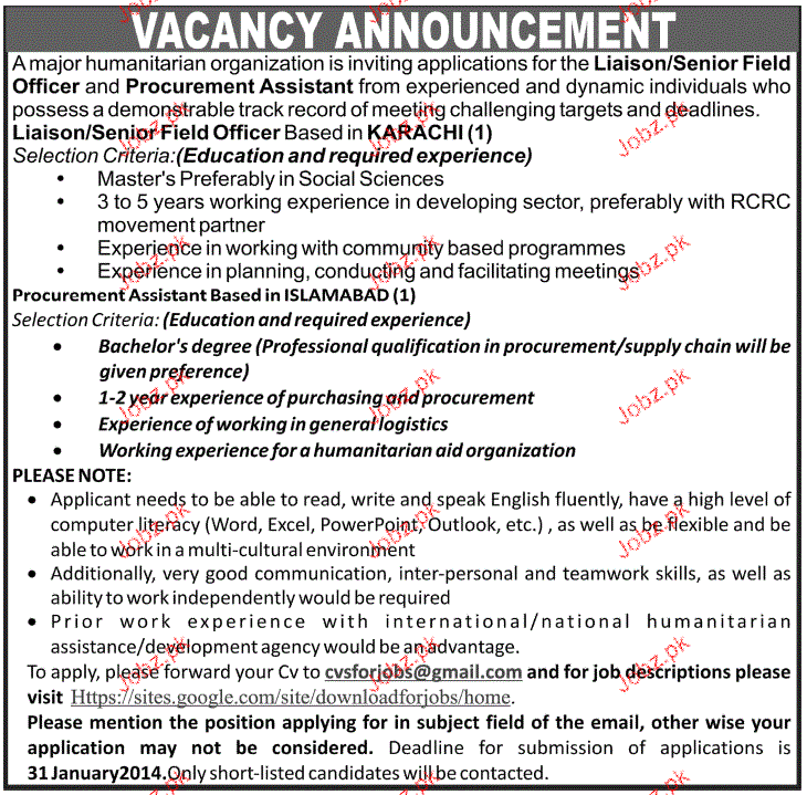 Liaison / Senior Field Officers And Procurement Asst Wanted