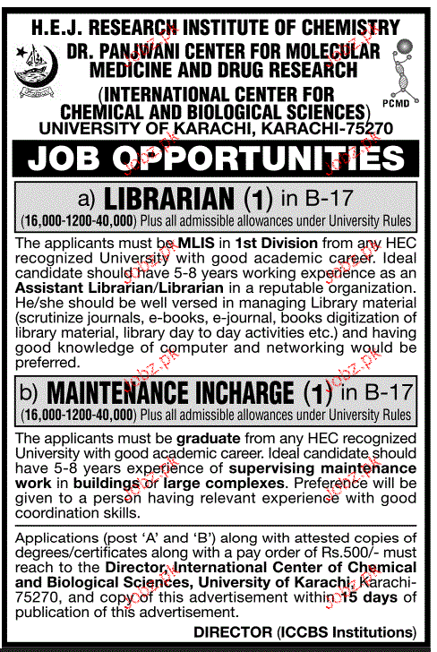 Apply as per details in job advertisement. Login to view further details of how to apply via https://www.jobz.pk online.