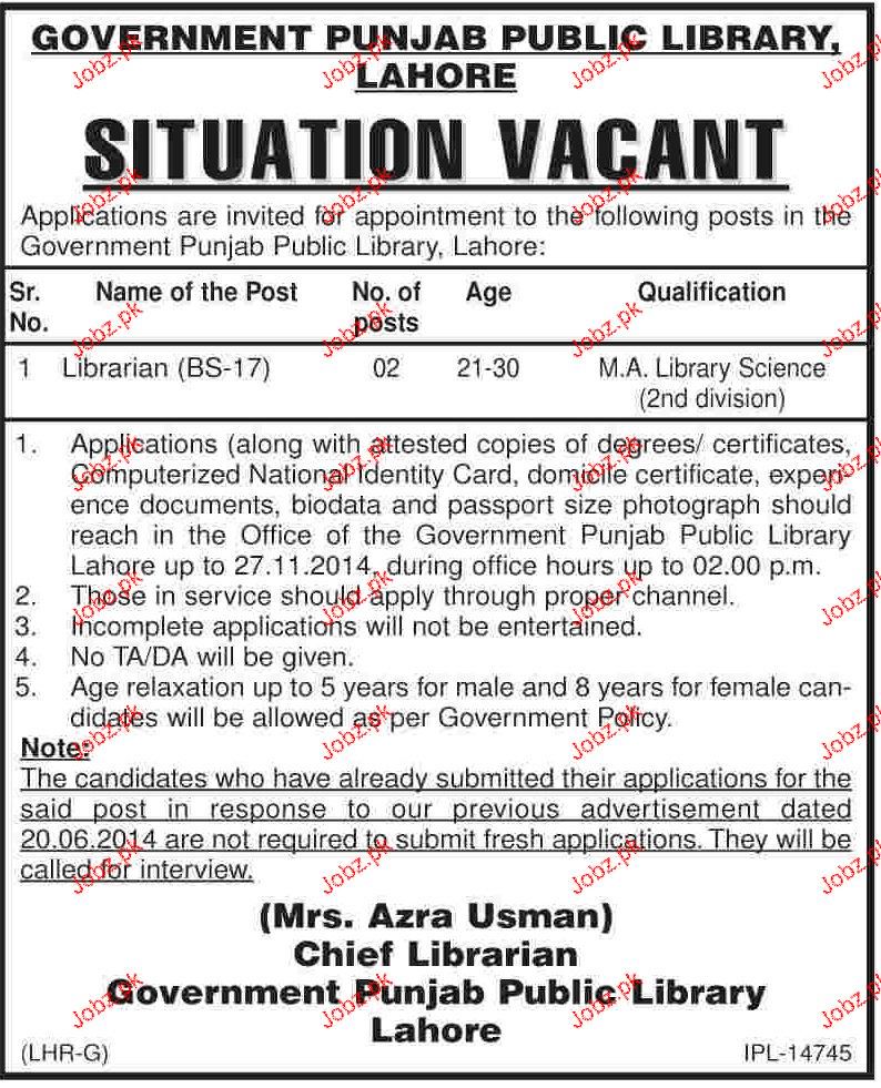 Apply as per details in job advertisement. Login to view further details of how to apply via https://www.jobz.pk online.