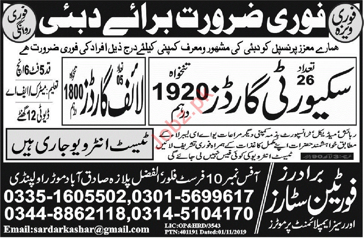 Latest Fourteen Star Brothers Overseas Employment Promoters Security Posts Dubai 2025