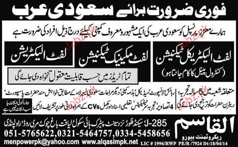 Lift Mechanic Technicians, Lift Electricians Job Opportunity
