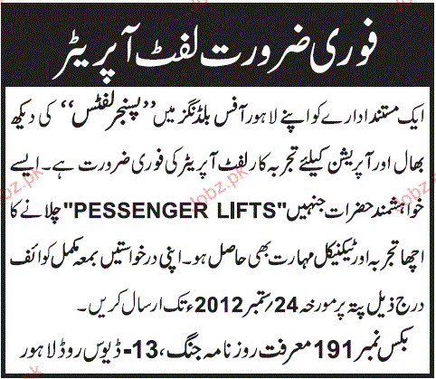 Apply as per details in job advertisement. Login to view further details of how to apply via https://www.jobz.pk online.