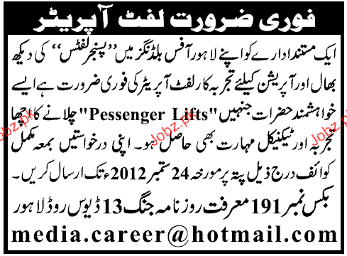 Apply as per details in job advertisement. Login to view further details of how to apply via https://www.jobz.pk online.