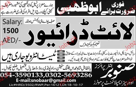 Latest Snobaar Enterprises Oversea Employment Promoters Driving Posts UAE 2025