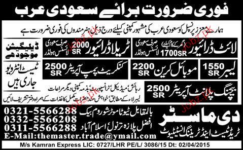 Light Drivers, Tralla Drivers, Labors Job Opportunity