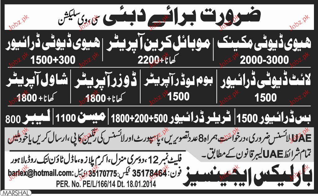 Light Duty Drivers, Mobile Crane Operators Job Oportunity