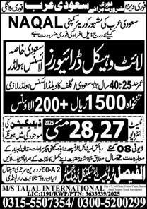 Light Vehicle Driver & LTV Driver Jobs 2025 in Saudi Arabia