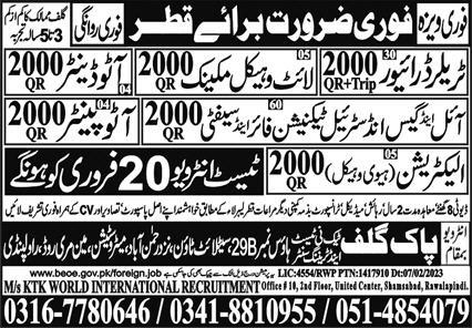 Pak Gulf Tec Ni Test & Training Center is looking for candidates for following posts as per job advertisement published in daily Express Newspaper of February 17, 2023 for location Qatar, qatar Qatar: