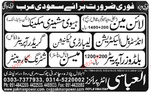 Line Man, Industrial Electricians, Mason Job Opportunity