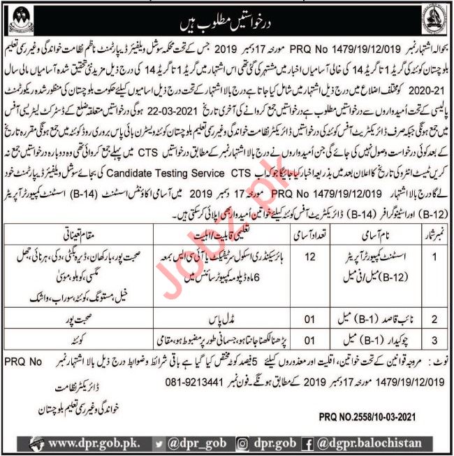 Latest Literacy & Non Formal Basic Education Department Education Posts Quetta 2025