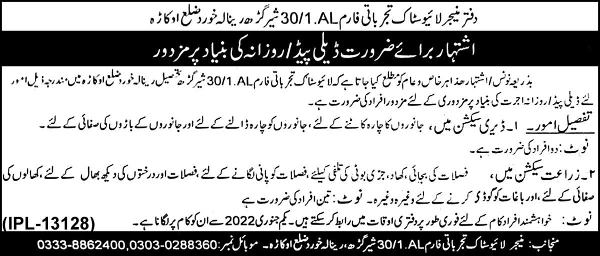 Livestock Agricultural Experiential Farm Renala Khurd Jobs