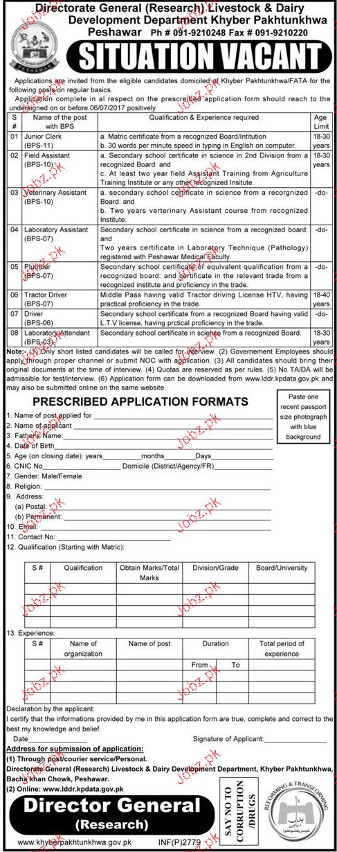 Latest Government Department Admin Clerical Posts Peshawar 2025
