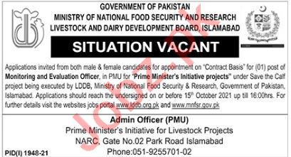 Vacancies in Ministry Of National Foods & Security Research Advertisement September 2021