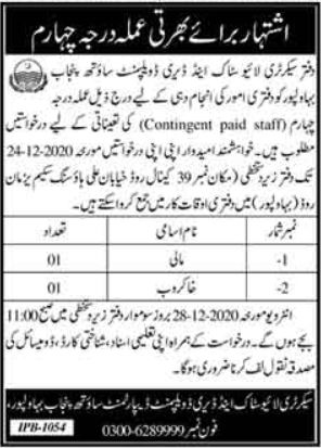 Latest Livestock & Dairy Development Department Posts Bahawalpur 2025