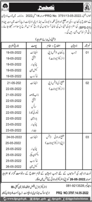 Livestock & Dairy Development Department Quetta, quetta Balochistan Pakistan invites applications from eligible candidates for the post of behashti, beldar, security guard, camelman, sice, chowkidar, hardman, vaccine packer, khakroob, cableman and attendant as per advertisement of May 15, 2022 published in daily Jang Newspaper. Preferred Education is Primary, Matric and Middle etc.