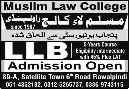 Muslim Law College has announced admissions 2022 for Bachelor of Law LLB. Students who want to take admissions in Muslim Law College Rawalpindi Punjab Pakistan for academic year 2022 to continue education in Law College can apply. Eligible candidates for admissions in LLb can apply as per Private institute criteria and before closing date 19 February 2022 after reading advertisement online. Read newspaper ad for exact details.