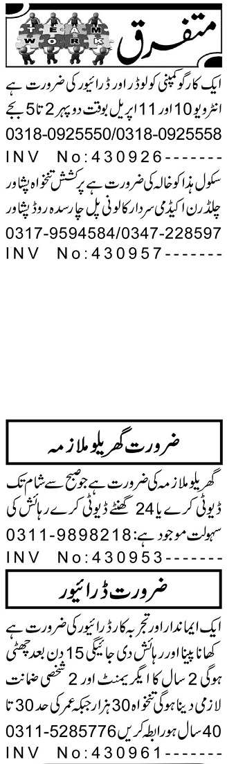 Private Company is looking for candidates for following posts as per job advertisement published in daily Aaj Newspaper of May 11, 2024 for location Peshawar, peshawar Khyber Pakhtunkhwa KPK Pakistan: