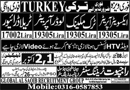Rajput Training Center invites applications for job positions advertised in daily Express dated 27 September 2024 for following vacancies in Ankara, istanbul Turkey.