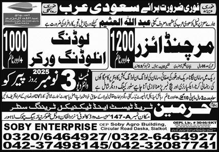 Soby Enterprises Overseas Employment Promoters invites applications for job positions advertised in daily Express dated 1 November 2025 for following vacancies in Jeddah, dammam Saudi Arabia.