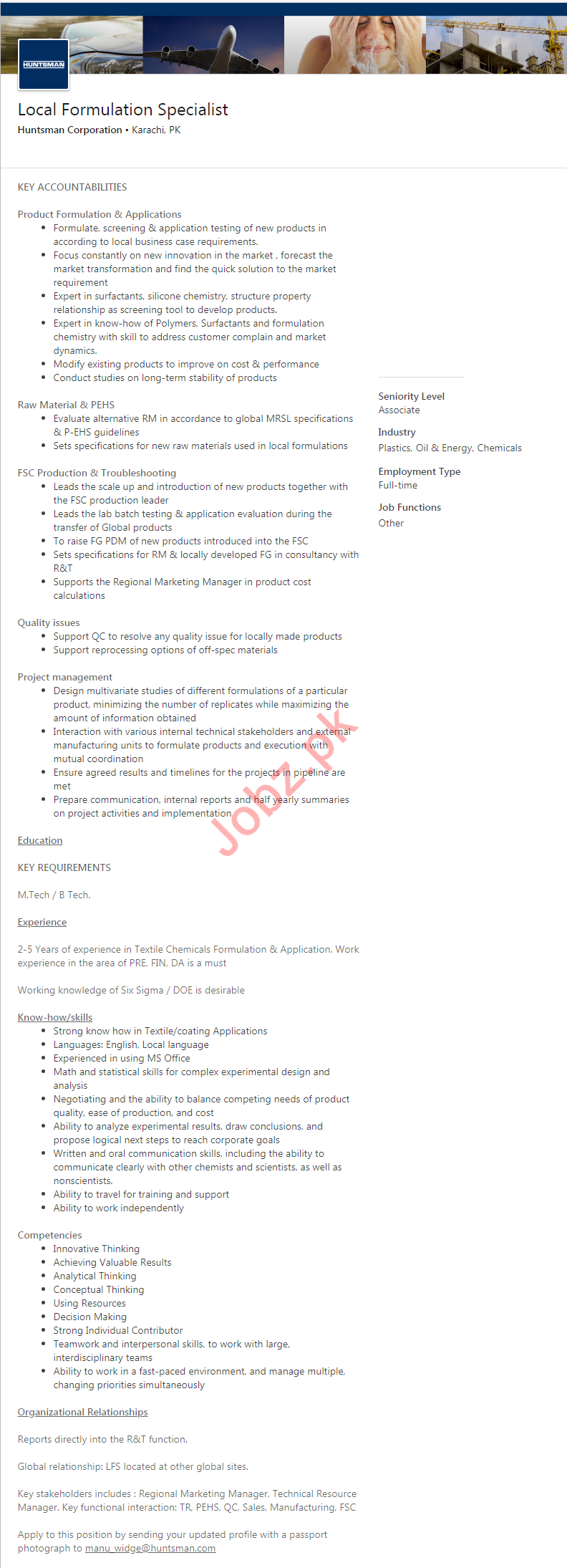 Latest Huntsman Corporation Management Posts Karachi 2025