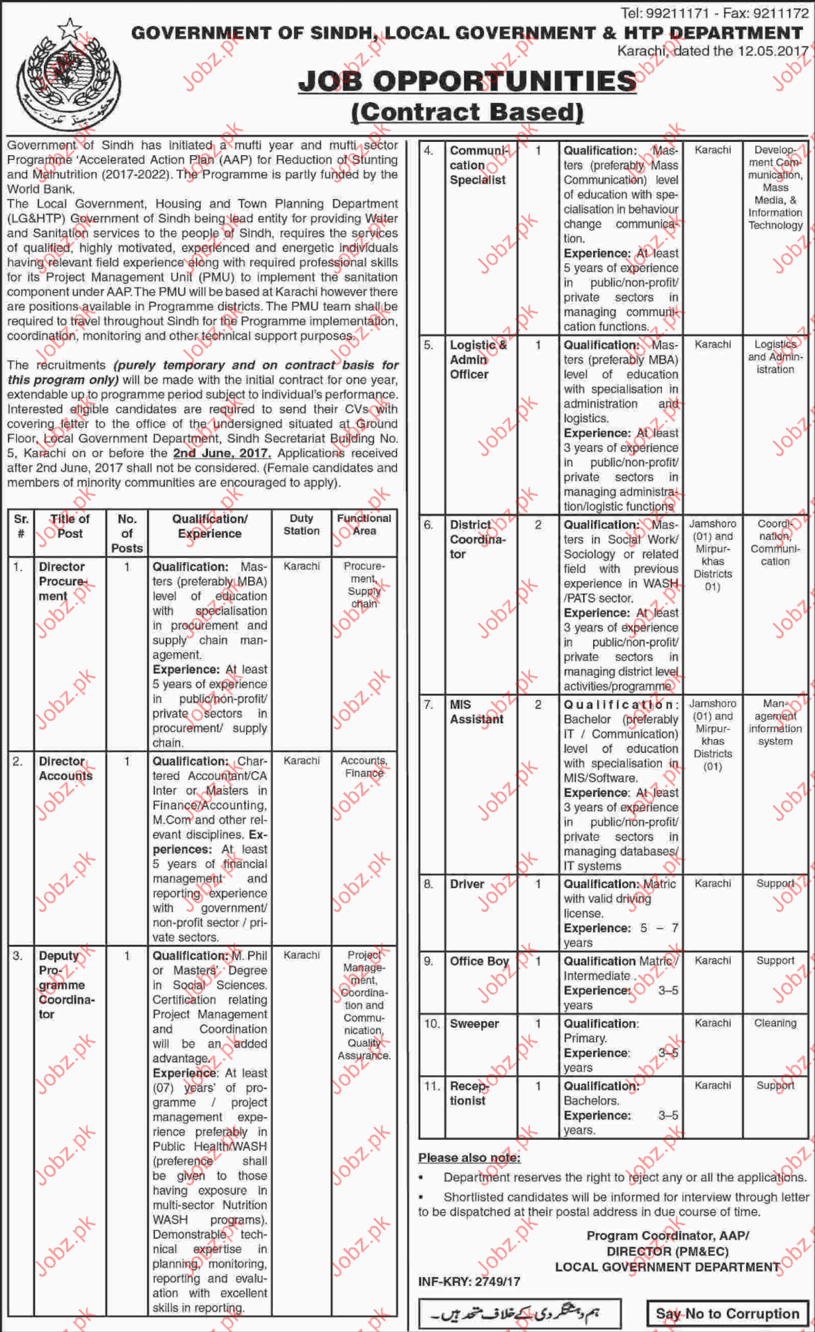 Latest Government Management Posts Karachi 2025
