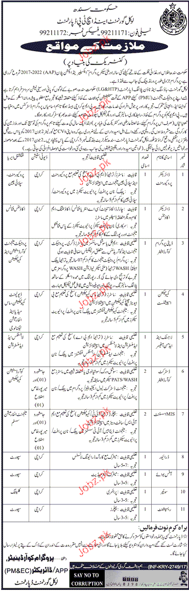 Latest Local Government and Rural Development Department Management Posts Karachi 2025