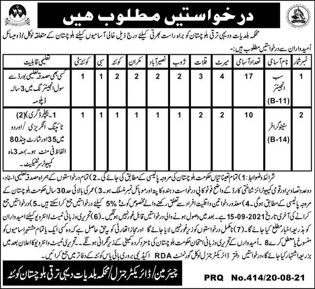 Vacancies in Local Government and Rural Development Department Advertisement August 2021