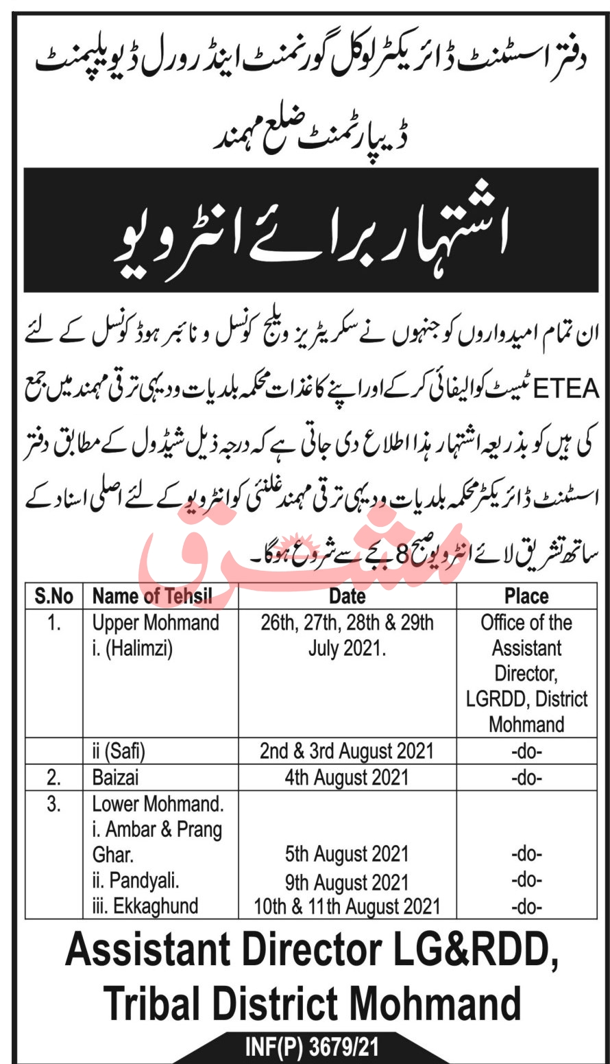 Latest Local Government Elections & Rural Development Department Management Posts Mohmand 2025