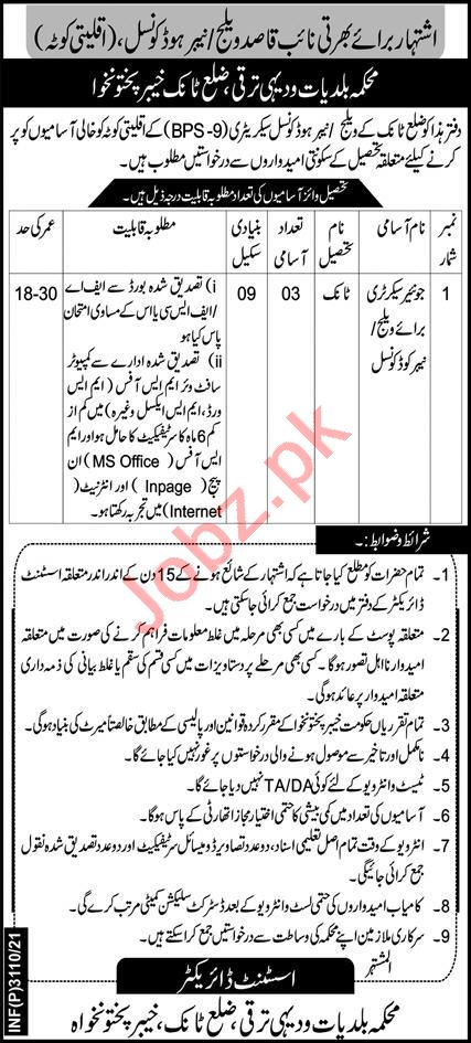 Vacancies in Local Government Elections & Rural Development Department Advertisement June 2021