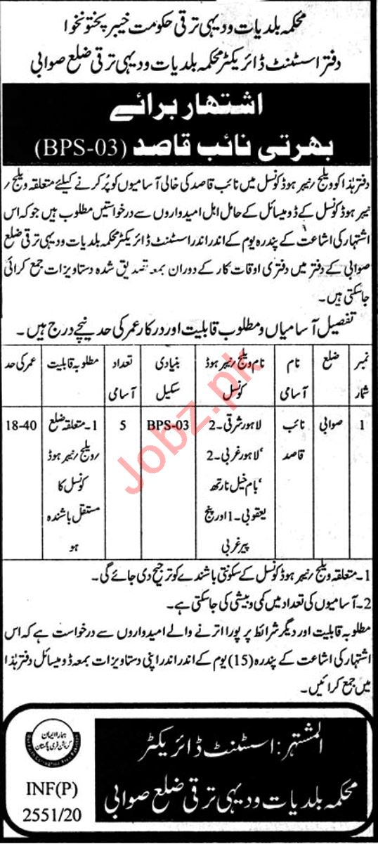 Vacancies in Local Government and Rural Development Department Advertisement July 2020