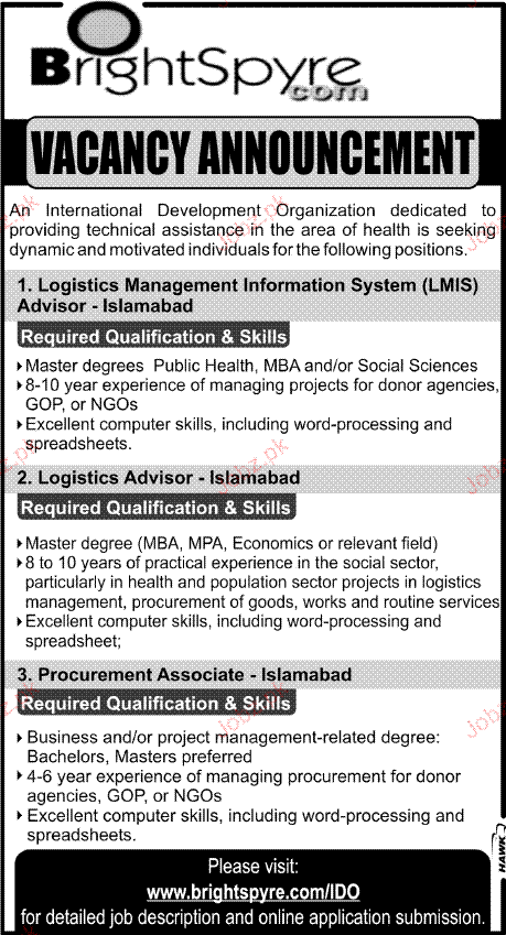 Apply as per details in job advertisement. Login to view further details of how to apply via https://www.jobz.pk online.