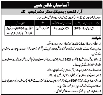 Vacancies in AJK Regimental Center Advertisement August 2024