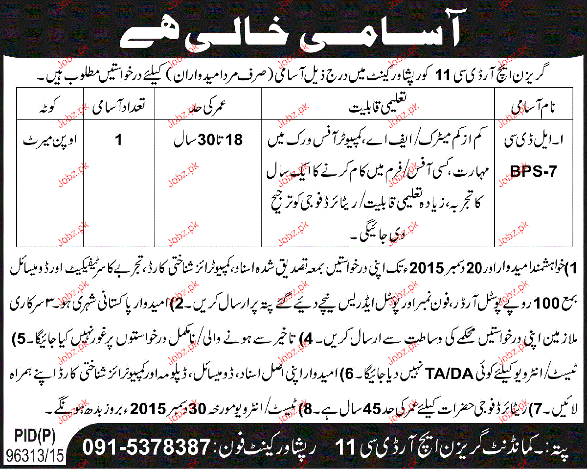Latest Pakistan Army Admin Clerical Posts Peshawar 2025