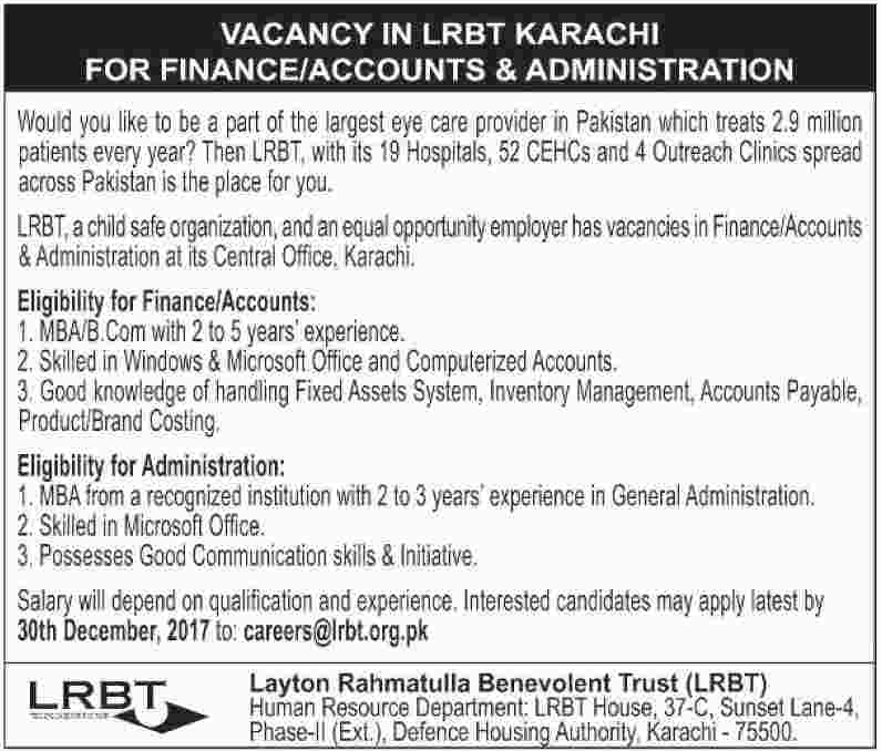Latest Layton Rahmatullah Benevolent Trust LRBT Management Posts Karachi 2025