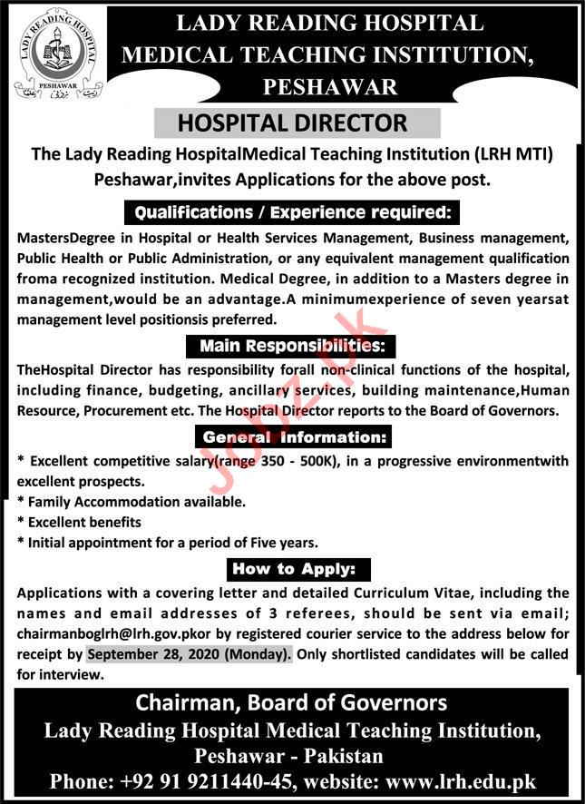 LRH MTI Peshawar Jobs 2020 For Hospital Director