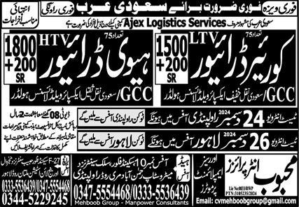 LTV Courier Driver & Heavy Driver Jobs 2024 in Saudi Arabia