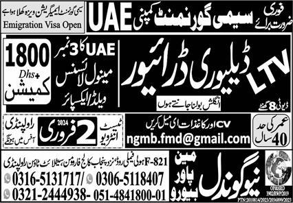 New Gondal Manpower Bureau is looking for candidates for following posts as per job advertisement published in daily Express Newspaper of February 1, 2024 for location Sharjah, abu dhabi UAE: