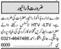 LTV Driver & HTV Driver Jobs 2025 in Lahore