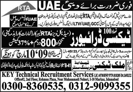 Vacant posts including driver, ltv driver and taxi driver are announced in Malik Techni Test & Training Center Dubai as per 8 March 2022 advertisement in daily Express Newspaper. Candidates with Intermediate and Matric etc. educational background will be preferred.
