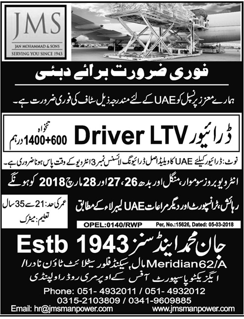 Latest JAN MOHAMMAD AND SONS Driving Posts UAE 2025