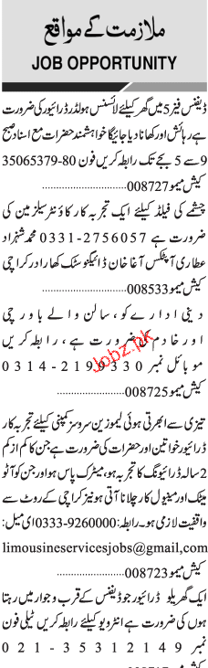 Apply as per details in job advertisement. Login to view further details of how to apply via https://www.jobz.pk online.