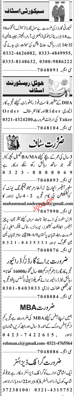 LTV Drivers, security Guards, Waiters Job Opportunity