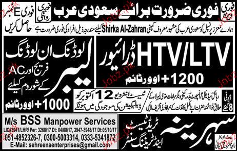 LTV / HTV Drivers, Lading / Unloading Labors Wanted