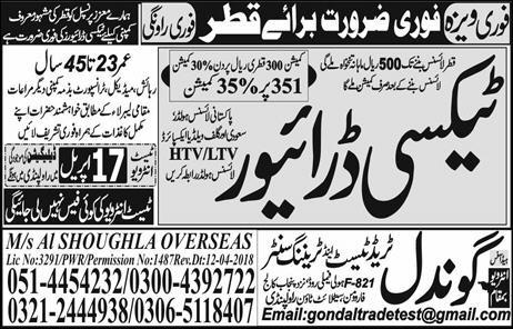 Latest Gondal Trade Test & Training Center Driving Posts Qatar 2025