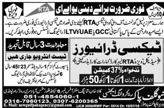 LTV Taxi Drivers Job In RTA Dubai Taxi