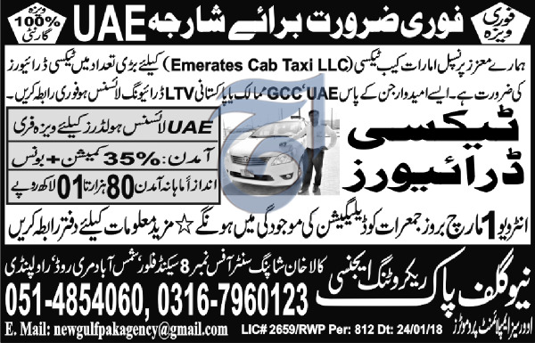LTV Taxi Drivers Job In UAE Emerates Cab Taxi