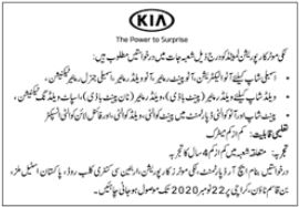 Vacancies in KIA Lucky Motors Company Advertisement November 2020