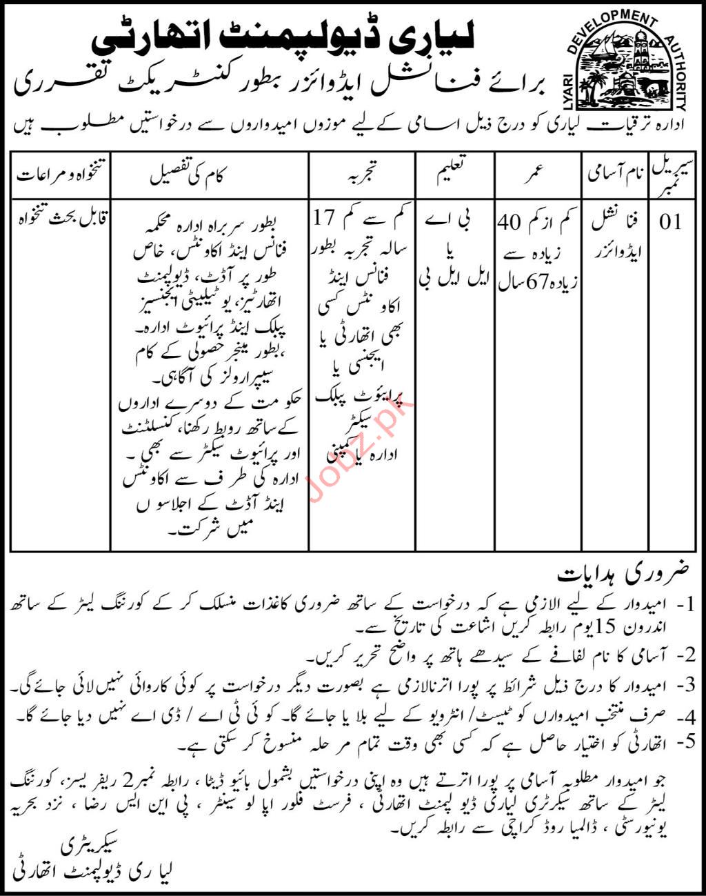 Vacancies in Lyari Development Authority Advertisement December 2019